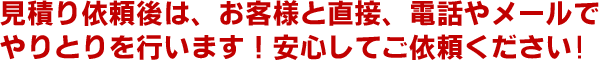 ご依頼後、詳細内容を確認させていただくため、改めて弊社より電話、またはメールにてご連絡させていただきます。